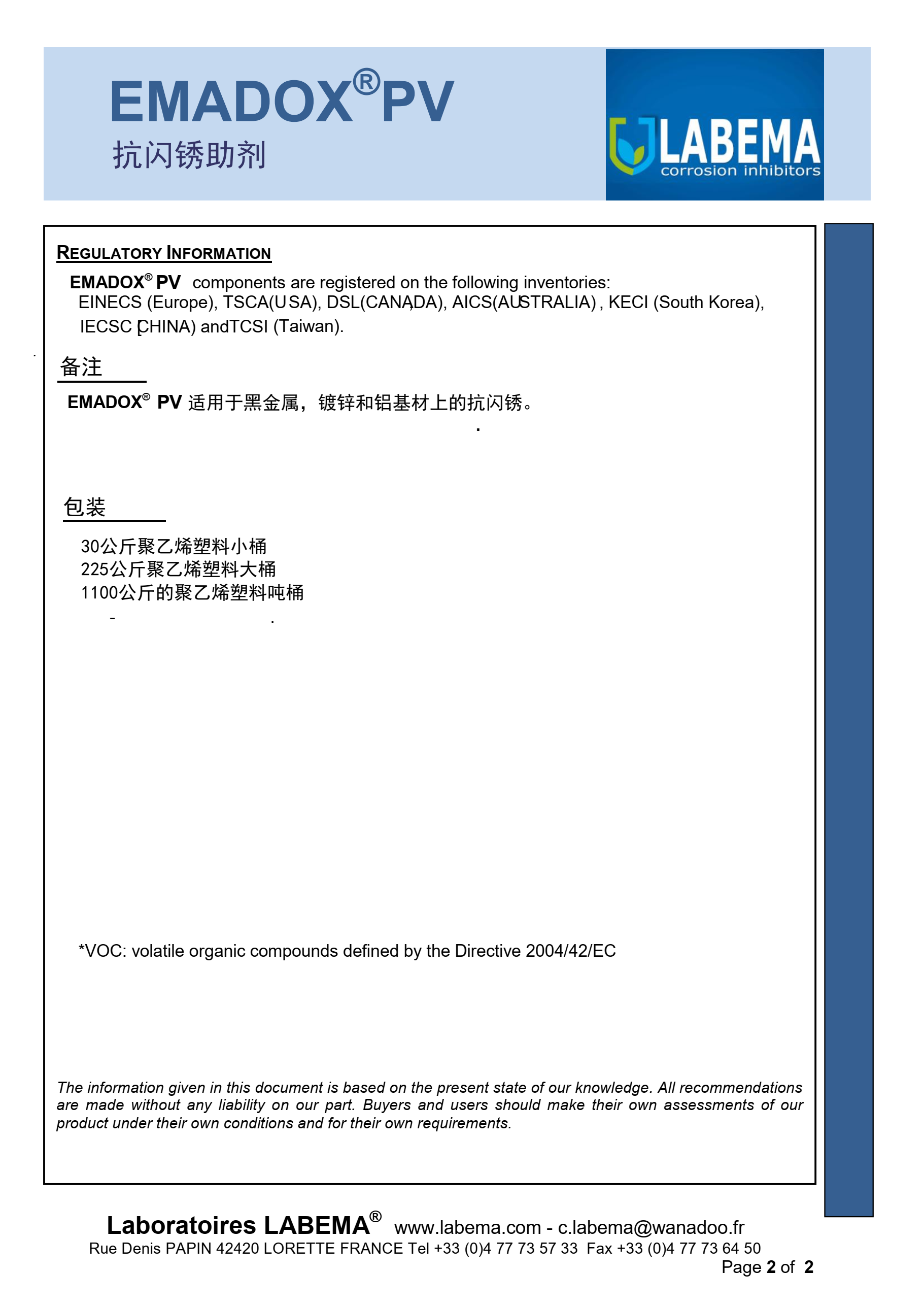 EMADOX® PV特别設計(jì)用于保護(hù)與水性配(pèi)方接觸的(de)黑色金屬(shu)(鐵、鑄鐵、鋼(gang))和♋鋁,不含(hán)VOC。含緩蝕性(xìng)鹽類和亞(ya)硝酸鈉的(de)即用水溶(rong)液抗閃鏽(xiu)劑,提供高(gao)效的抗閃(shan)鏽并促進(jìn)塗層的疏(shu)水性。應用(yong)于🔞水性工(gōng)業漆,水🈲性(xing)鋼結構防(fang)腐塗料。
