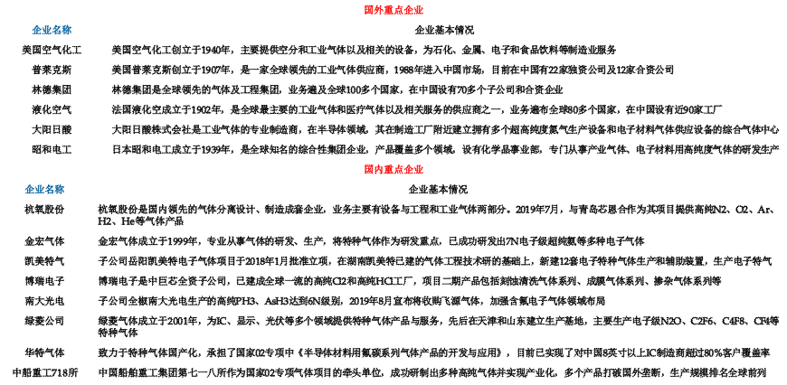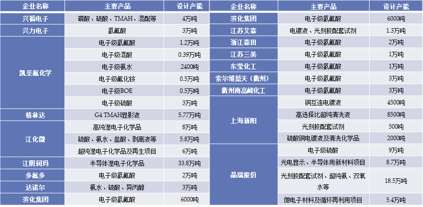 國(guo)内主要半(ban)導體濕電(diàn)子化學品(pin)布局情況(kuang):