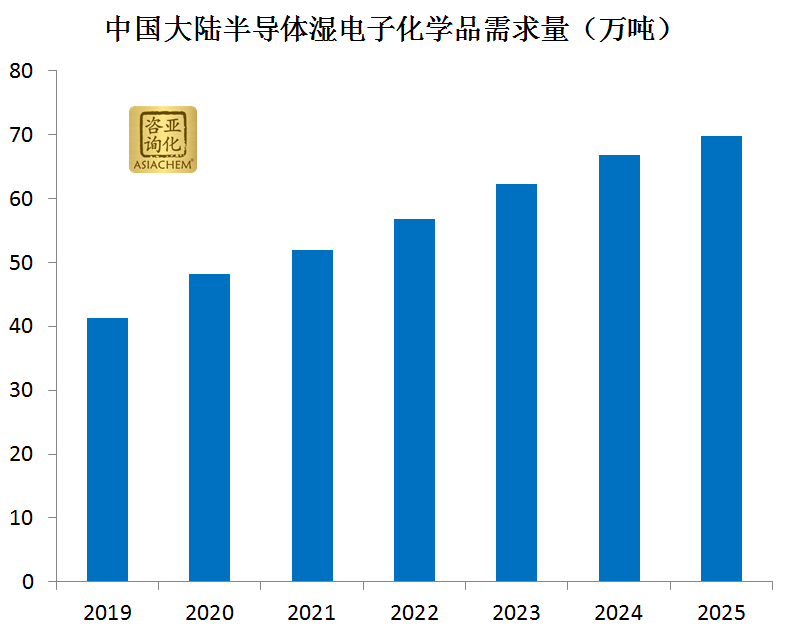 根據未(wei)來中國半(bàn)導體晶圓(yuán)産能進行(hang)推算,亞化(hua)咨詢預計(ji)到2025年,中國(guó)半導體用(yòng)濕電子化(huà)學品需求(qiu)量将接近(jìn)70萬噸。