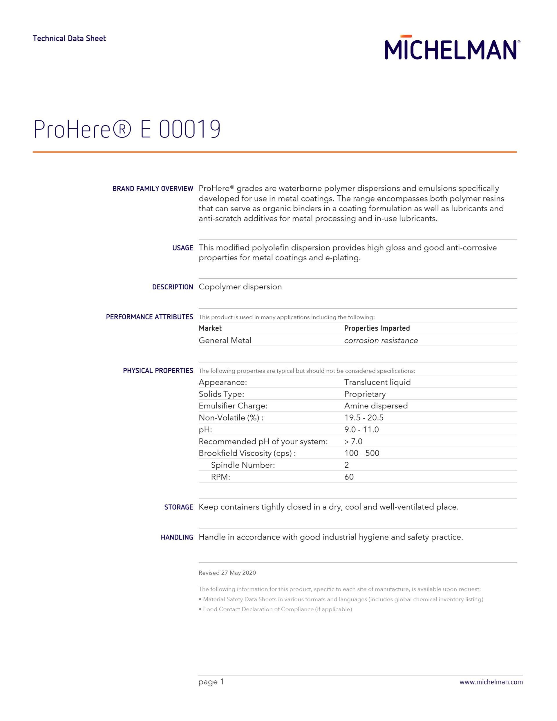 Michelman麥可門Prohere E 00019 乙烯-丙烯酸EAA封閉樹脂_深圳市同泰化學技術有限公司 電鍍中間體/水性樹脂與助劑/特種水性油墨/水性納米二氧化矽/工業清洗/半導體化學品