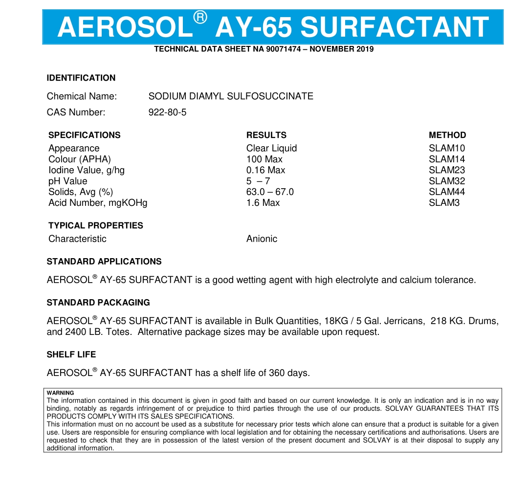 磺基(jī)丁二酸二戊基鈉(na)鹽(乙醇和水的65%陰(yīn)離子溶液),易被生(sheng)物降解,作爲鍍鎳(niè)潤濕劑、鍍鉻中間(jian)體。