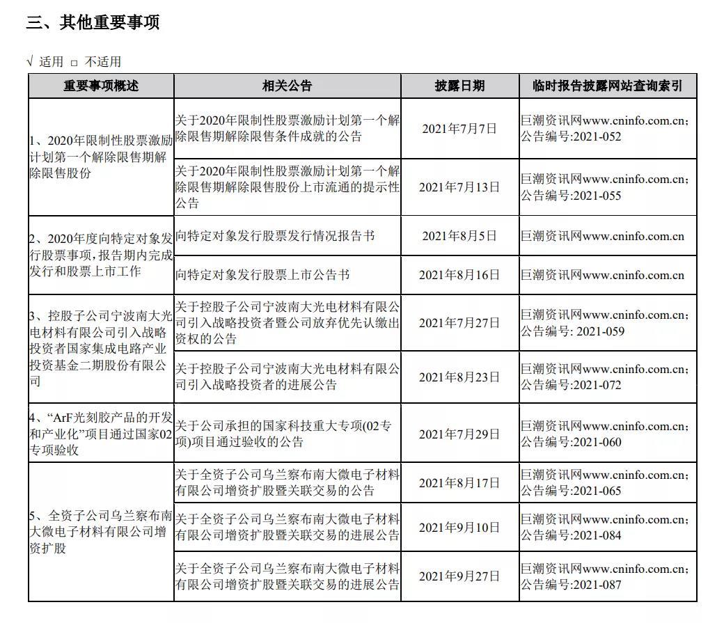 對于營收增長(zhang)的原因,南大光(guang)電表示主要是(shì)本期🥰公司産品(pǐn)市場需求增長(zhǎng)所緻。同時,南大(da)光電在報♌告中(zhōng)披露總結了公(gōng)司第三季度的(de)重要事項——