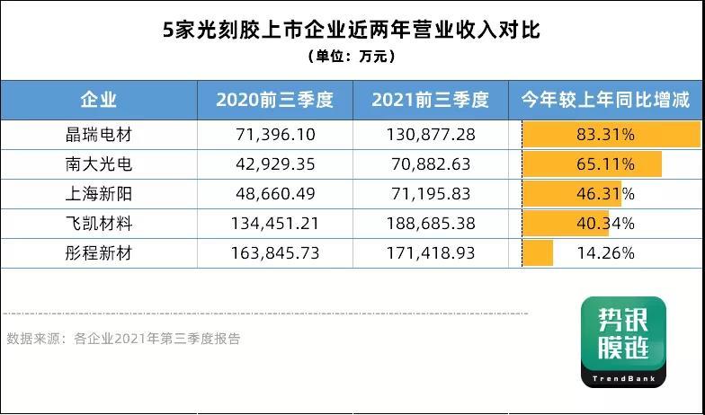 目(mu)前,5家光刻膠上(shàng)市企業均已發(fa)布2021年第三季度(dù)報告,各家企業(ye)的今年前九月(yuè)成績單到底如(rú)何?