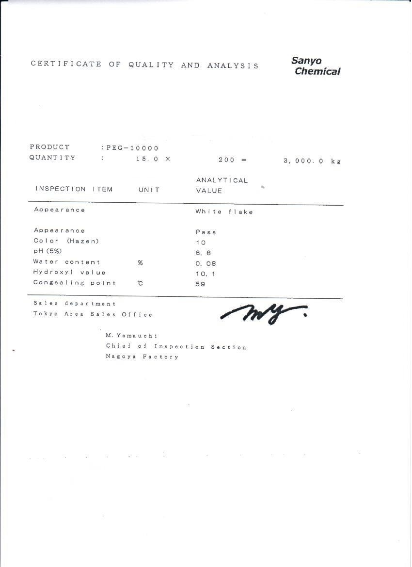 PEG-10000是日本三(sān)洋化成工業株(zhū)式會社(SANYO)生産的(de)一款數均分子(zǐ)量在10000的👉聚乙二(èr)醇産品,在五金(jin)、塑膠和PCB酸性鍍(dù)銅光亮劑中提(ti)💚供表🌈面高效抑(yi)制作用。PEG-10000作爲優(yōu)秀的電鍍中間(jiān)體,有廣泛的溶(rong)解範圍、優良的(de)兼容性、潤✊滑性(xing)、成膜性、增塑性(xing)和分散性。PEG-10000産品(pin)無刺激性,屬非(fēi)離子型聚合物(wù)。