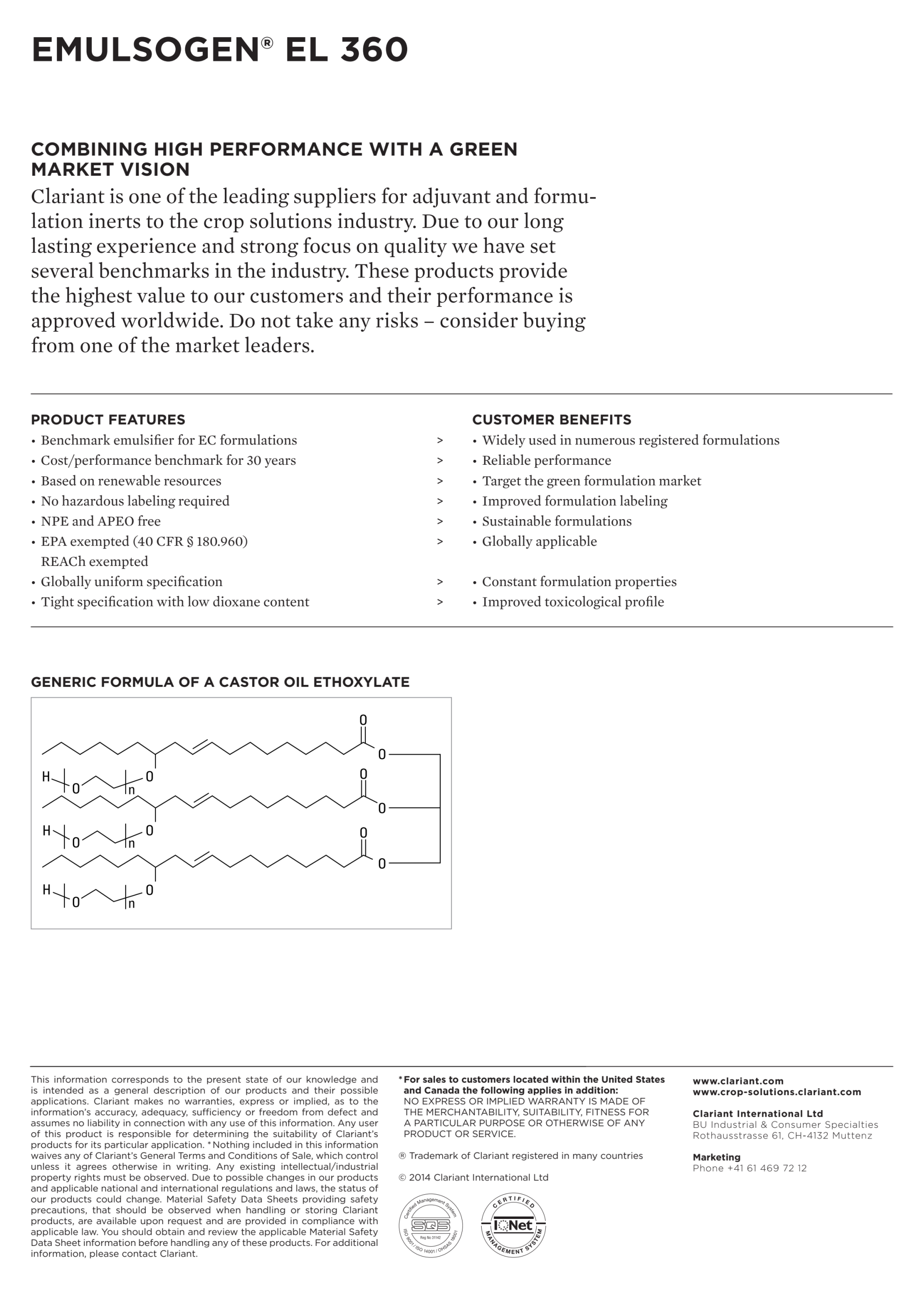科萊恩Emulsogen EL 360表面活性劑_深圳市同泰化學技術有限公司 電鍍中間體/水性樹脂與助劑/特種水性油墨/水性納米二氧化矽/工業清洗/半導體化學品