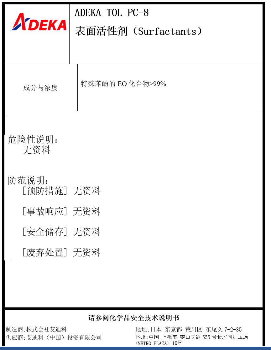 産品(pǐn)名稱:ADEKA TOL PC-8 文件(jian)編号:00080-00-2