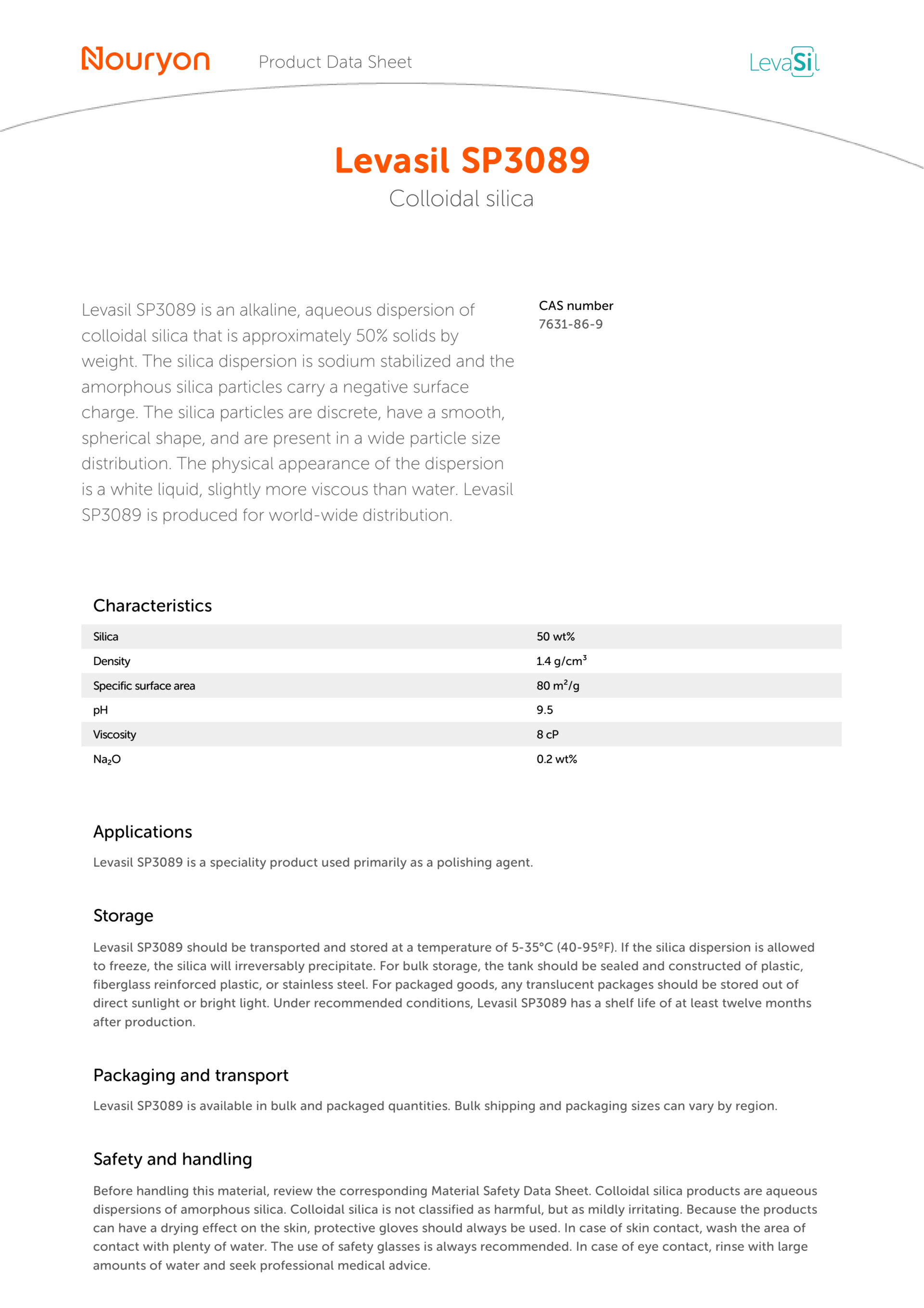 特(tè)征:Levasil SP3089是一(yi)款陰離(lí)子型水(shuǐ)性納米(mǐ)二氧化(hua)矽分散(san)液,産品(pin)pH值呈堿(jiǎn)性。